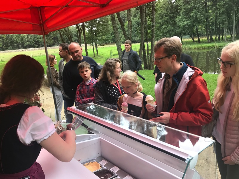 Susirinkusiems buvo pasakojama dvaro ir jo statinių istorija, krašto legendos. Galutinis ekskursijų taškas buvo laikinai įkurta prekybinė aikštė, kurioje klegėjo žmonės, besimėgaujantys grilio meistrų paruoštais patiekalais iš dvaro ūkyje užaugintų produktų.