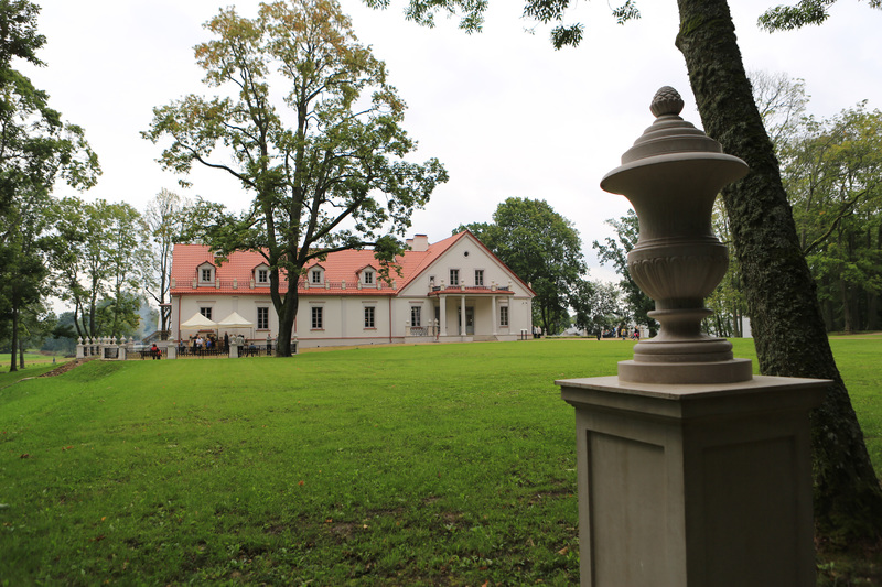 Reprezentacinį dvarvietės statinį – klasicistinio stiliaus dvaro rūmus – šventės dieną gėlėmis papuošė floristas Mantas Petruškevičius.