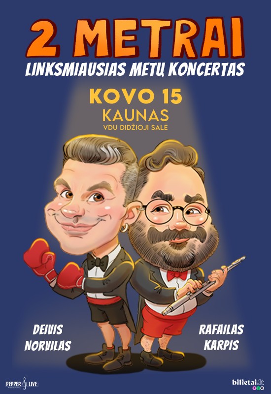 Lietuviškos muzikos scenoje prisistato naujas, nuotaikingas ir be abejonės didelę juoko dozę užtikrinsiantis duetas – jėgas sujungia dainininkas, tenoras Deividas Norvilas-Deivis ir operos solistas, tenoras Rafailas Karpis. Ateinantį rudenį, pristatydami naują projektą šmaikščiu pavadinimu „2 METRAI“, atlikėjai susitiks su klausytojais net keturiolikoje Lietuvos miestų ir užtikrins, kad tai bus linksmiausias matytas metų pasirodymas.