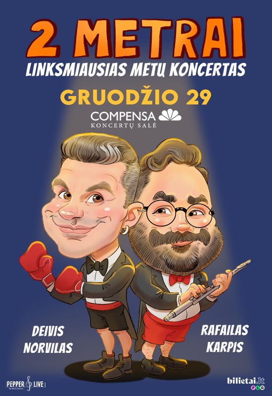 Lietuviškos muzikos scenoje prisistato naujas, nuotaikingas ir be abejonės didelę juoko dozę užtikrinsiantis duetas – jėgas sujungia dainininkas, tenoras Deividas Norvilas-Deivis ir operos solistas, tenoras Rafailas Karpis. Ateinantį rudenį, pristatydami naują projektą šmaikščiu pavadinimu „2 METRAI“, atlikėjai susitiks su klausytojais net keturiolikoje Lietuvos miestų ir užtikrins, kad tai bus linksmiausias matytas metų pasirodymas.