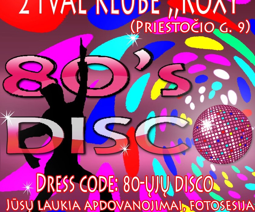 Šį ketvirtadienį ROXY klube be proto nuoširdus ir patrakęs senosios mokyklos vakarėlis: geriausi 80-ųjų muzikos šedevrai, disco stiliaus atmosfera, fotosesija, apdovanojimai ir naktis, po kurios tikrai bus ką prisiminti!