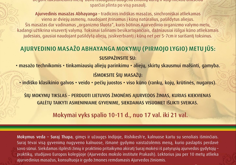 AJURVEDINIO MASAŽO ABHAYANGA MOKYMŲ (PIRMOJO LYGIO) METU JŪS: