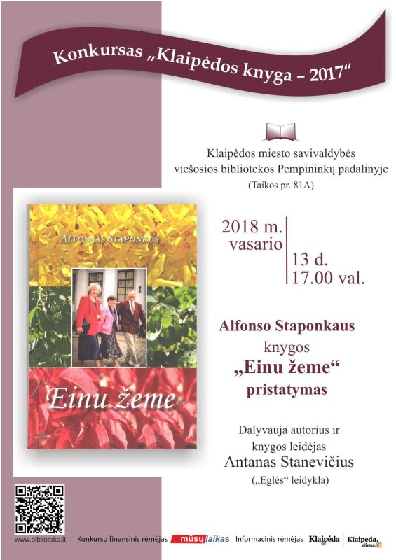 Klaipėdos miesto savivaldybės viešosios bibliotekos Pempininkų padalinyje (Taikos pr. 81A) kviečiame į Alfonso Staponkaus knygos „Einu žeme“ pristatymą.