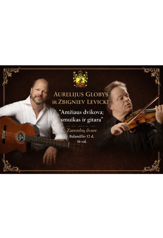 Balandžio 12 dieną Zarembų dvare susitiks du žinomi Lietuvos muzikantai – gitaros virtuozas Aurelijus Globys ir smuikininkas Zbignev Levicki.