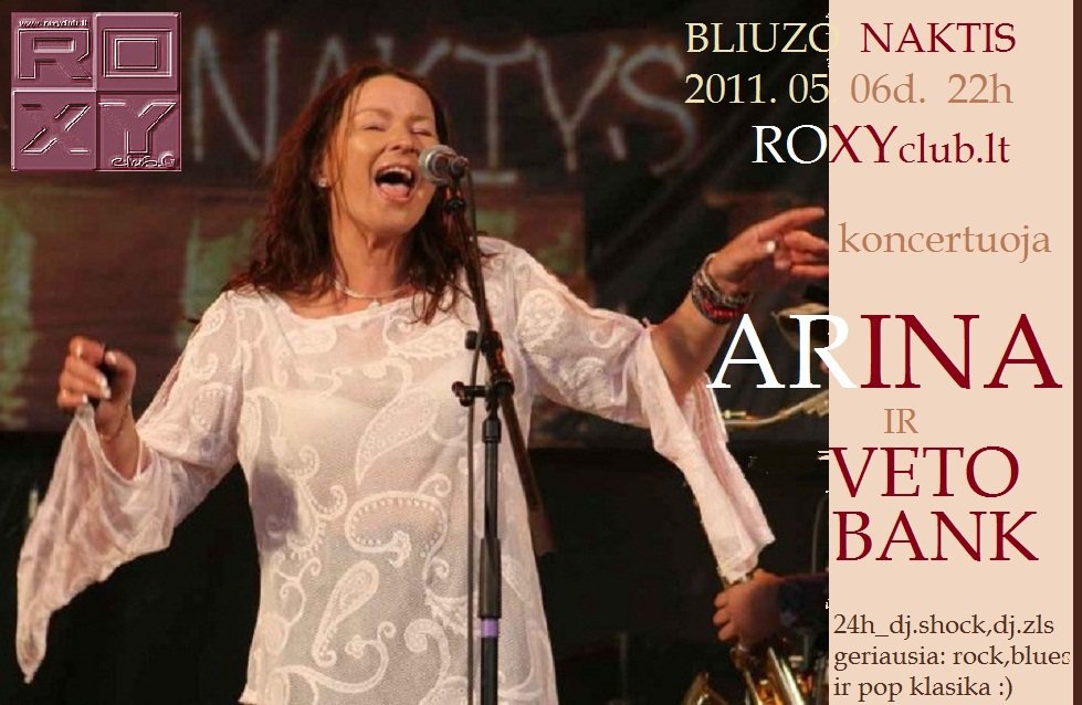 Lietuvos bliuzo Karalienė kartu su grupe “VETO BANK” jau šį penktadienį Roxy klubo lankytojams padovanos nepakartojamą bliuzo naktį!