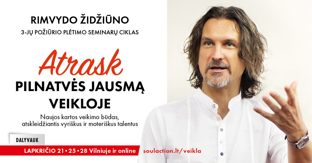 R. ŽIDŽIŪNO POŽIŪRIO PLĖTIMO SEMINARŲ CIKLAS „ATRASK PILNATVĖS JAUSMĄ VEIKLOJE: naujos kartos veikimo būdas, atskleidžiantis vyriškus ir moteriškus talentus” (3 SEMINARAI)