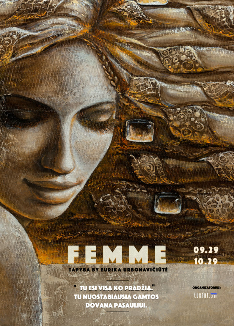 Neveltui žodis “Mūza” reiškiantis įkvėpimą yra moteriškos giminės. Geriau apsižvalgius viskas, kas pasaulyje įkvepia yra moteriškos kilmės. Kurdama visąlaik galvoju, kad nėra didesnio stebuklo už moterį, nes ji visa ko pradžia. Visais laikais moterys stengėsi išlikt paslaptingos, todėl net ir šiandien nėra nė vieno būdo ar vadovėlio leidžiančio įminti moters paslaptį. Toks tas gamtos dėsnis ir taškas. Kaip pavaizduoti tokią moterį?