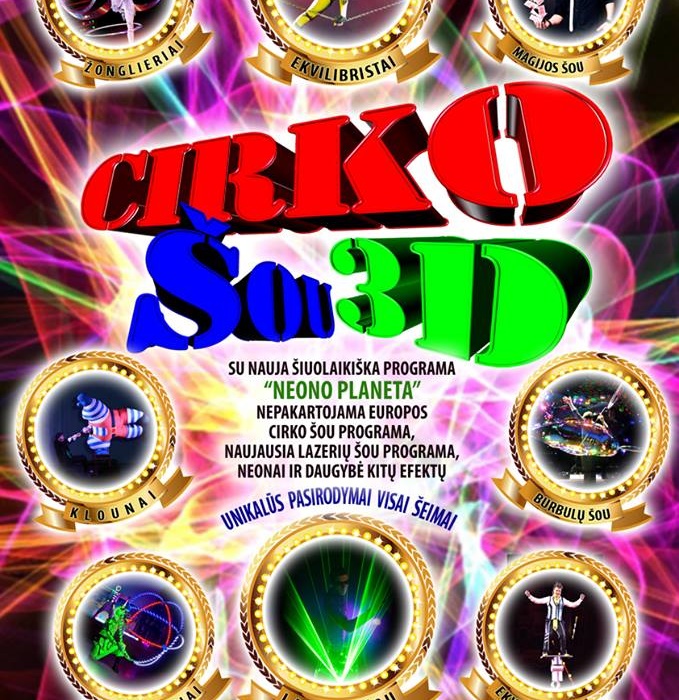 Cirko šou 3D jūsų laukia nauja, šiuolaikiška, kvapą gniaužianti programa, kurios metu pamatysi lazerių šou, šiuolaikines projekcijas, stulbinančius pasirodymus su neonais, daugybę spec. efektų ir kt.