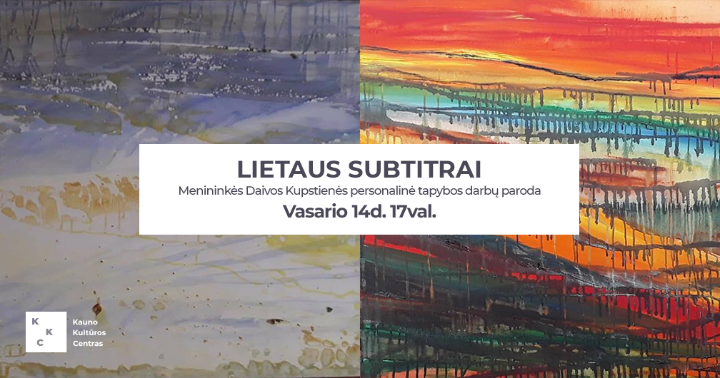 Kauno kultūros centre vasario 14 d. 17 val. vyks tapytojos Daivos Kupstienės pirmosios personalinės tapybos darbų parodos „Lietaus subtitrai“ atidarymas.