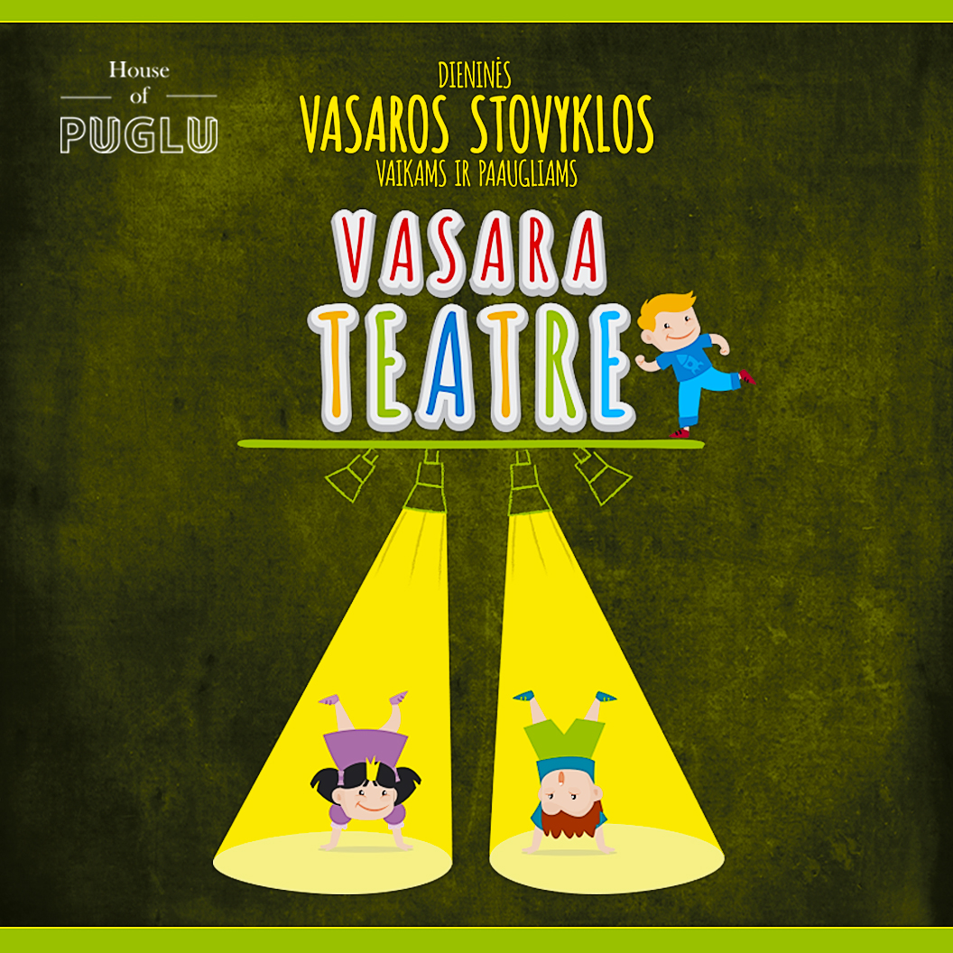 Vasaroti mieste liekantys vaikai kviečiami į teatrą „House of Puglu“ – čia, dieninės stovyklos metu, vaikai turės galimybę iš labai arti susipažinti su teatro menu ir patys bent kelioms dienoms tapti aktoriais, režisieriais, dramaturgais, grimeriais ir netgi kostiumų dizaineriais ir scenografais.