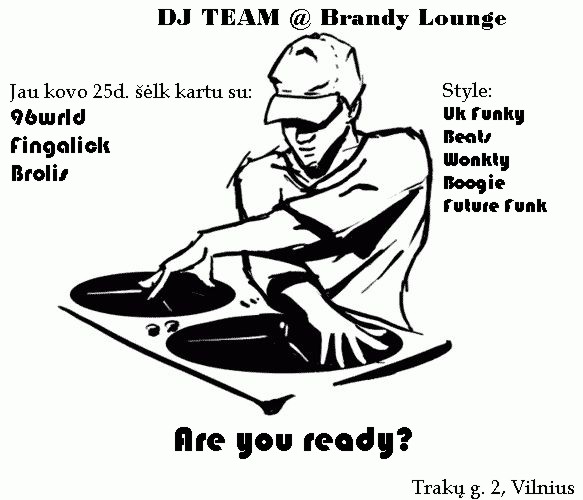 Vieta: Kavinė – baras Brandy Lounge, Trakų g. 2, Vilnius Laikas: Kovo 25d. 22:00 – Kovo 26d. 05:00