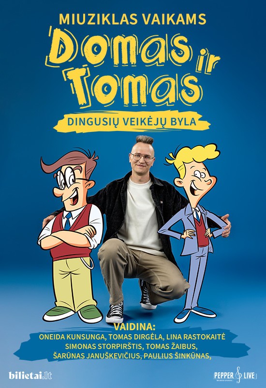 Populiariausio mūsų šalies vaikų rašytojų Tomo Dirgėlos sukurti personažai – Domas ir Tomas – išlipa iš knygų puslapių ir kviečia vaikus bei jų tėvelius susitikti miuzikle „Domas ir Tomas: dingusių veikėjų byla“. Po kiekvieno spektaklio knygų autorius susitinka su vaikais nusifotografuoti ir pasirašyti ant atsineštų knygų.