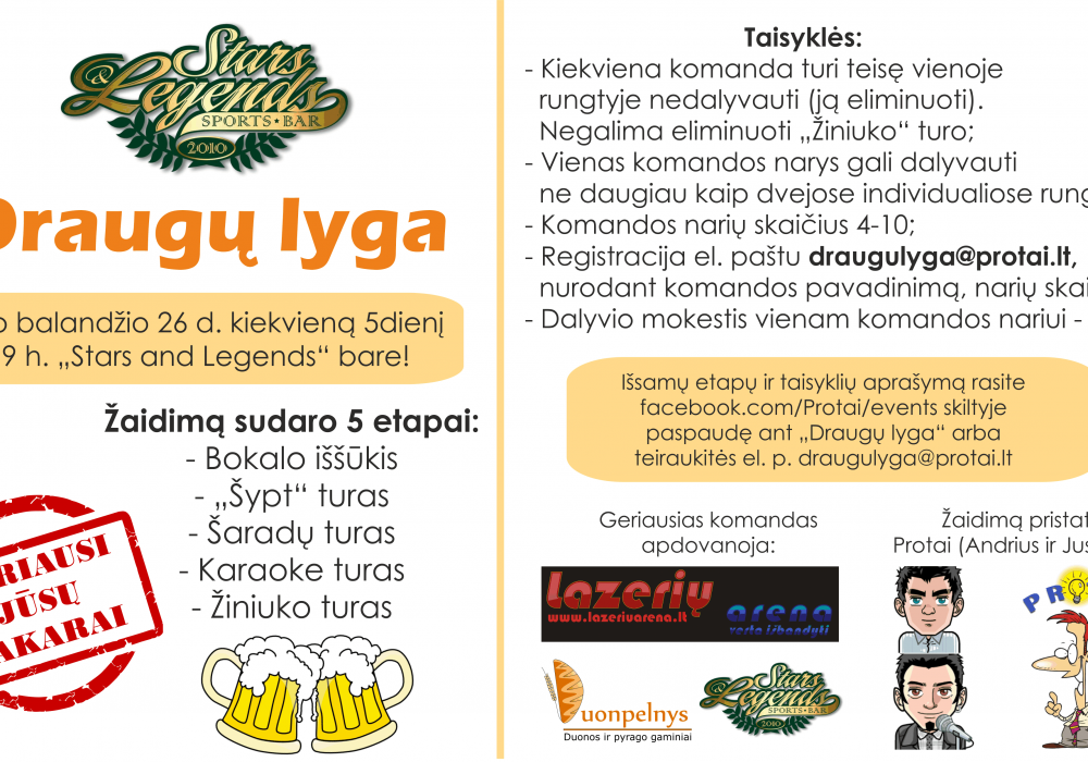 Daugiau info apie renginį: http://www.protai.lt/draugu-lyga.html