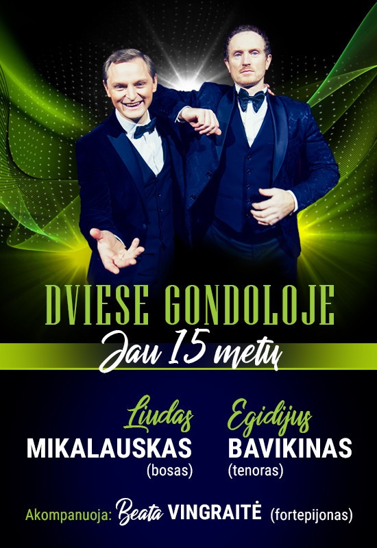 Kur tik jie nuvyksta, ten iš karto gimsta šventė! Jų nepaprastas gebėjimas bendrauti su publika, subtilus humoro jausmas sukuria betarpišką atmosferą, kuri kiekvienam žiūrovui leidžia pasijusti koncerto dalimi – ploti, dainuoti, šokti ir nubraukti juoko ašarą kartu su mylimais dainininkais. Prieš kelis metus, uždainavus Venecijoje garsiąją „O sole mio“ ir pamačius, kaip publika yra pasiilgusi jų atliekamų dainų, atlikėjai nusprendė ryžtis ir 15 metų bendro dainavimo proga pakeliauti po Lietuvą – dėl itin gausaus žiūrovų būrio, šaunusis duetas keliauja po Lietuvą iki šiol. Nepraleiskite progos apsilankyti neužmirštamame vakare, kartu su šmaikščiųjų scenos bičiulių dainomis bent mintimis paplaukioti Venecijos kanalais, grožėtis lietuviškomis dainomis, įspūdingiausiais operetės duetais.