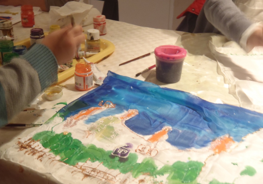 Praktinėje dalyje kartu su tėveliais tapysime, štampuosime, išpuošime šilko skareles.