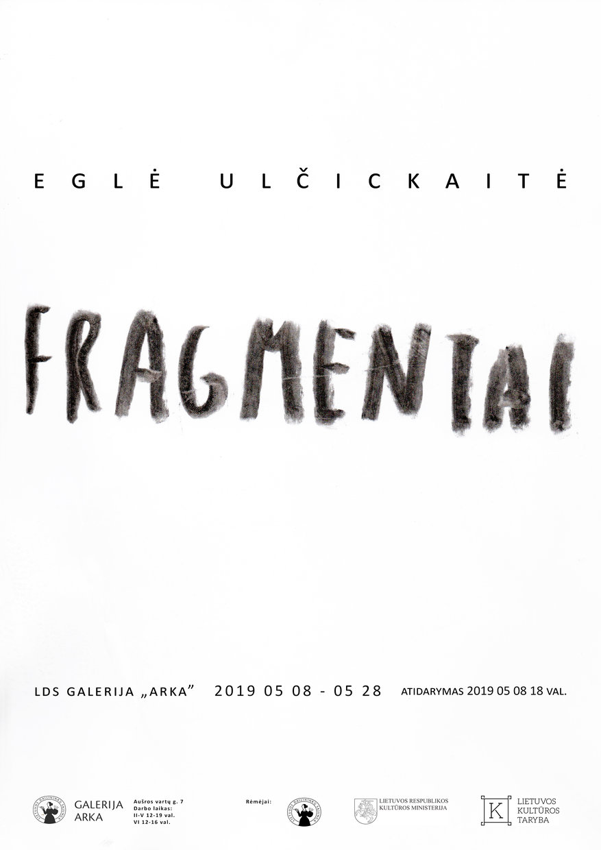 Fragmentas [lot. fragmentum – nuolauža, skeveldra] – nedidelė visumos dalis, nuotrupa. Žodį „fragmentas“ šios parodos kontekste galima traktuoti daugiaprasmiškai. Parodoje pristatau keletą savo 2012 – 2019 m. kūrybos fragmentų iš tapybos, piešinių, akvarelių, koliažų bei radinių kolekcijų.