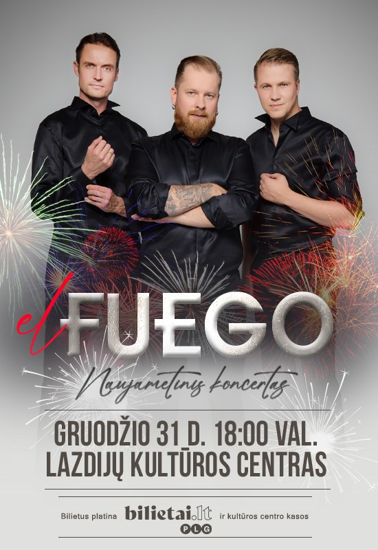 Analogo Lietuvoje neturinti, daugiau nei 15 metų aktyviai koncertuojanti trijų klasikinių vyriškų balsų grupė “El Fuego” atvyksta į Lazdijus su dar daugiau najų dainų.