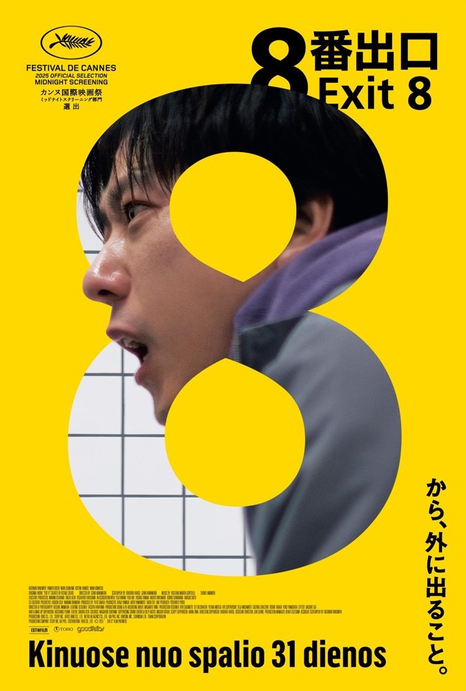 „Exit 8“ – kultinio siaubo žaidimo ekranizacija, Kanų kino festivalyje palikusi stiprų įspūdį ir sulaukusi audringų ovacijų.