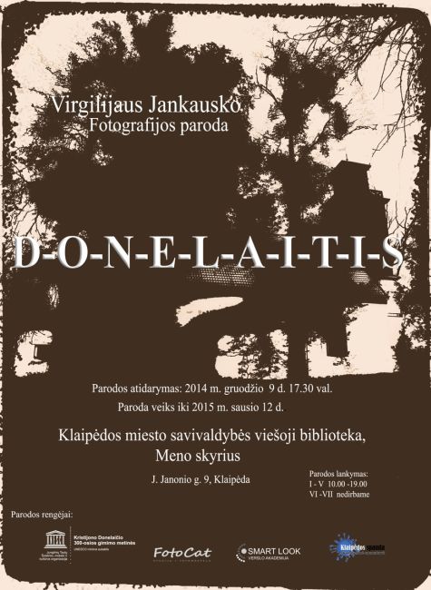 Gruodžio 9 d. 17.30 val. Klaipėdos miesto savivaldybės viešosios bibliotekos Meno skyriuje (J. Janonio g. 9) atidaroma Virgilijaus Jankausko fotografijos paroda „DONELAITIS”.