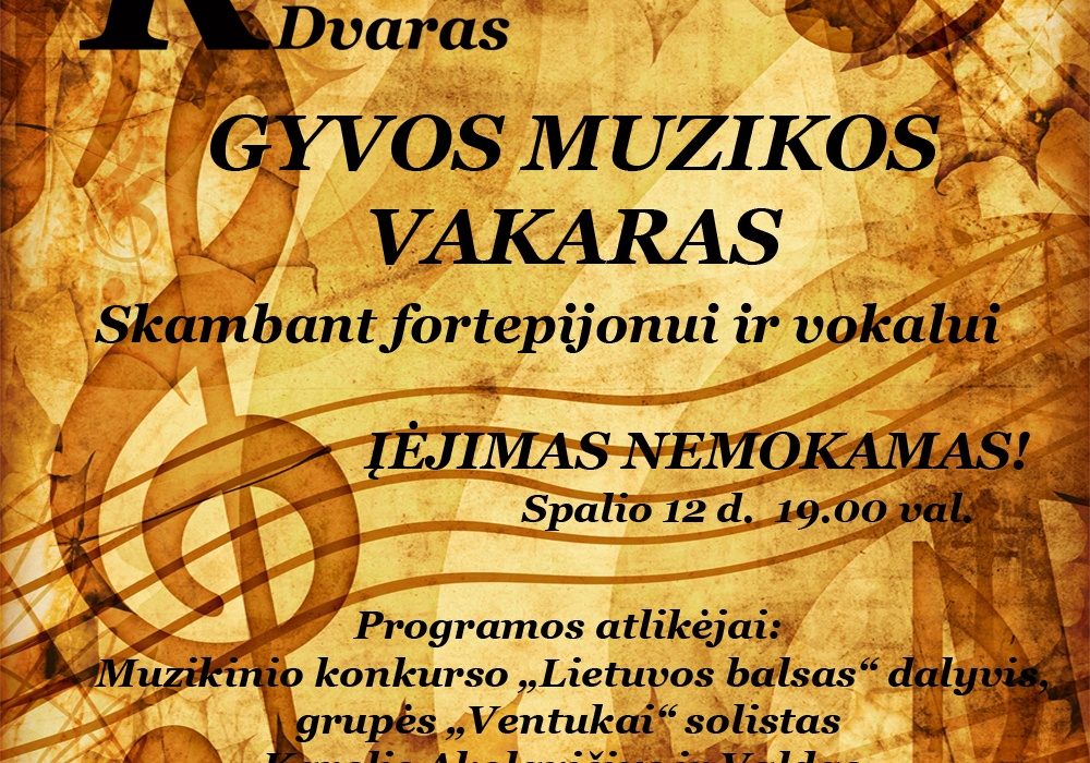 Jau šį šeštadienį (spalio 12d.), 19.00 val. “RIMUOŠĖS DVARE” vėl skambės gyva muzika.