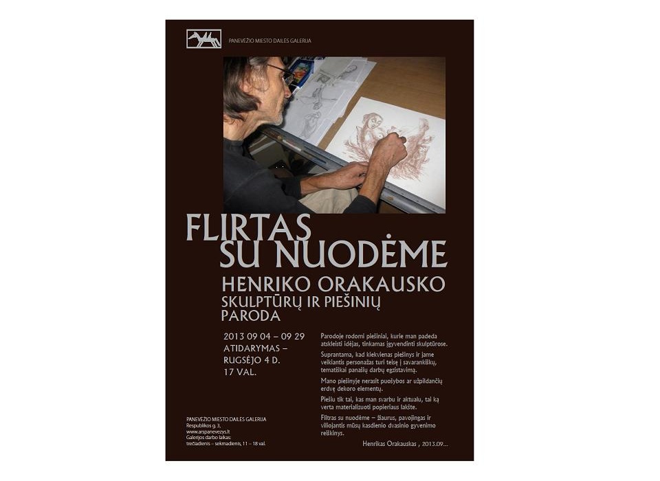 Rugsėjo 4 d. 17 val. Panevėžio miesto dailės galerijoje atidaroma Henriko Orakausko skulptūrų ir piešinių paroda „Flirtas su nuodėme”. Paroda bus eksponuojama iki rugsėjo 29 d.