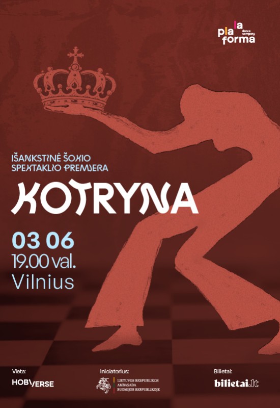 Kotrynos istorija – gyvas tiltas tarp Lietuvos, Suomijos ir Švedijos, sujungiantis kultūras ir Baltijos jūros krantus. „KOTRYNA“ – tai daugiau nei spektaklis. Tai judesiu pasakojama istorija apie moters vaidmenį valdžioje, diplomatiją, tapatybę ir kultūrinę jungtį, aktualią ir šiandien.
