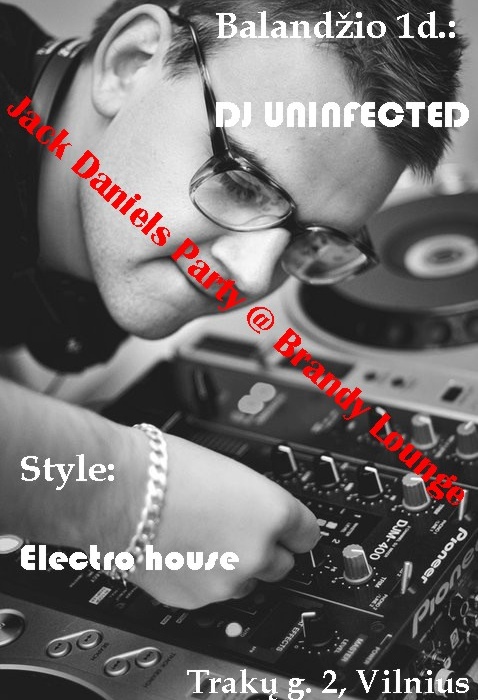 Vieta: Kavinė – baras Brandy Lounge, Trakų g. 2, Vilnius Laikas: Balandžio 1d. 22:00 – Balandžio 2d. 05:00 Įėjimas nemokamas Mes nemeluojame ir šį penktadienį pažadame, kad bus tikrai karšta. Išsiilgtasis Jack Daniel’s vakarėlis bus kupinas dovanų ir fotoaparato blyksčių. Gerkime patį populiariausią amerikietišką burboną, kaip visada, tik už 7Lt. Electro house muzikos ritmus valdys Brandy Lounge rezidentas Dj Uninfected. Šis didžėjus pasižymi veržlumu, tad ar esate pasiruošę šėlti kartu su juo? Nemiegok, būk penktadienį kartu su Brandy Lounge! Tapk mūsų draugu: http://www.facebook.com/profile.php?id=100001253125693