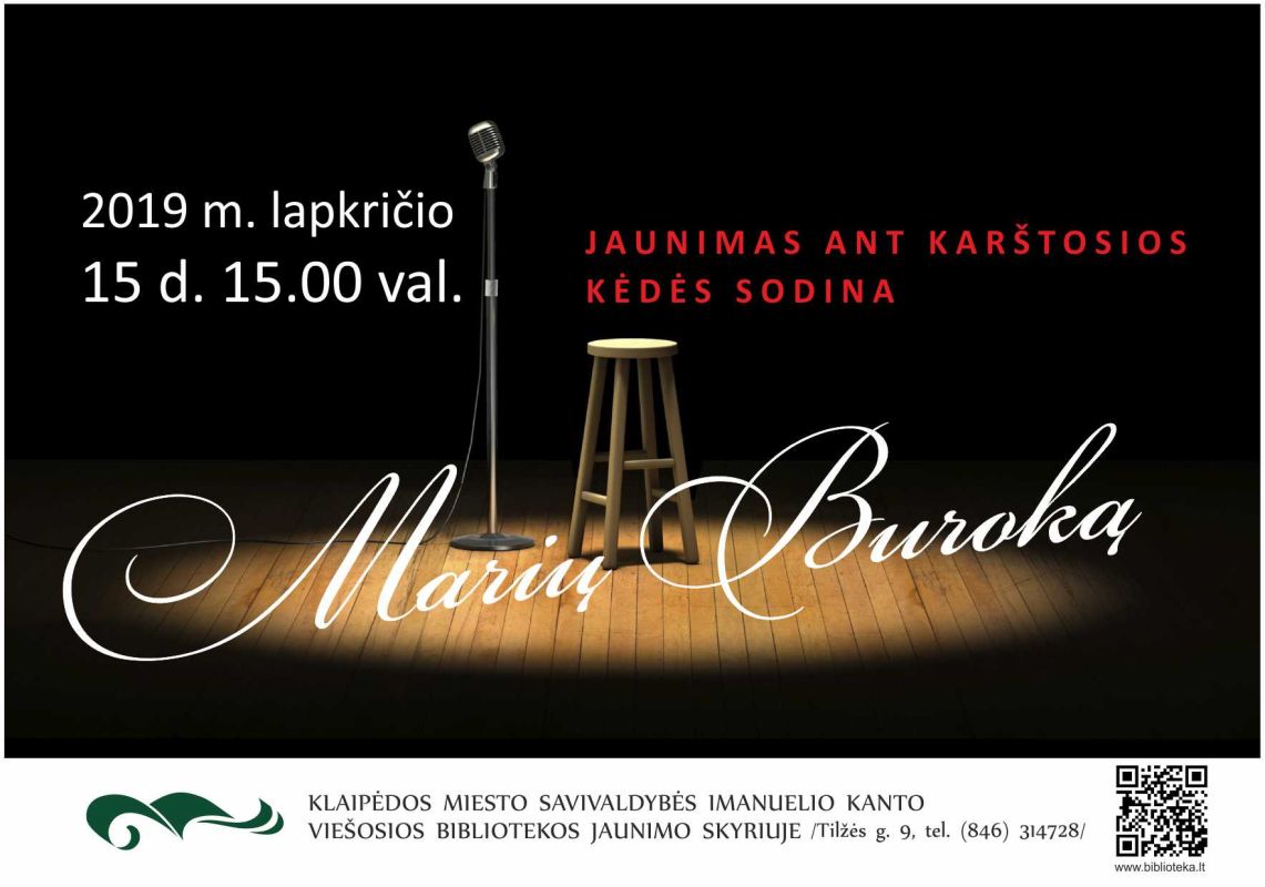 Lapkričio 15 d. 15 val. jaunimas ant karštosios kėdės sodina poetą, vertėją, literatūros apžvalgininką Marių Buroką.