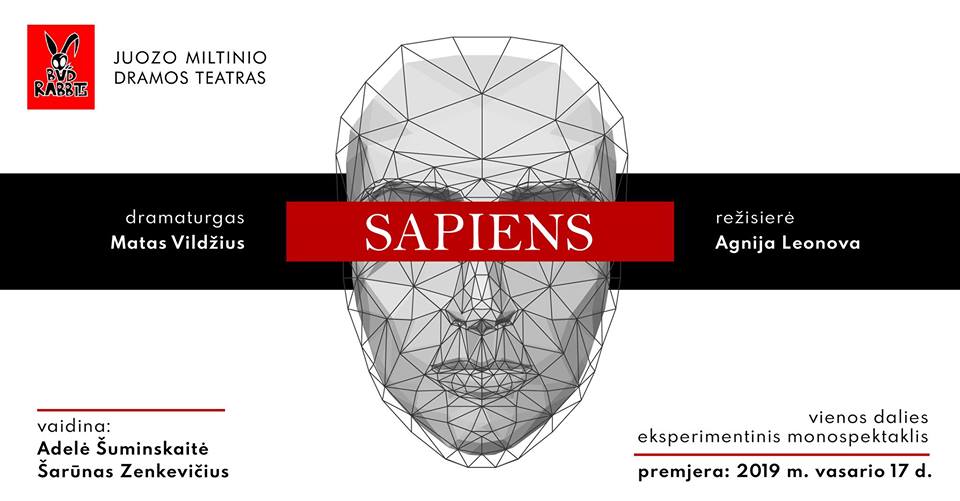 Režisierės Agnijos Leonovos spektaklis pagal perspektyvaus dramaturgo Mato Vildžiaus pjesę „Sapiens“ – tai ambicingas jaunų menininkų mėginimas kelti klausimus apie žmogiškumo ir pačios žmonių rūšies ateitį skaitmenos, virtualių patirčių, skaitmeninių technologijų ir robotikos technologijų renesanso laikmečiu.