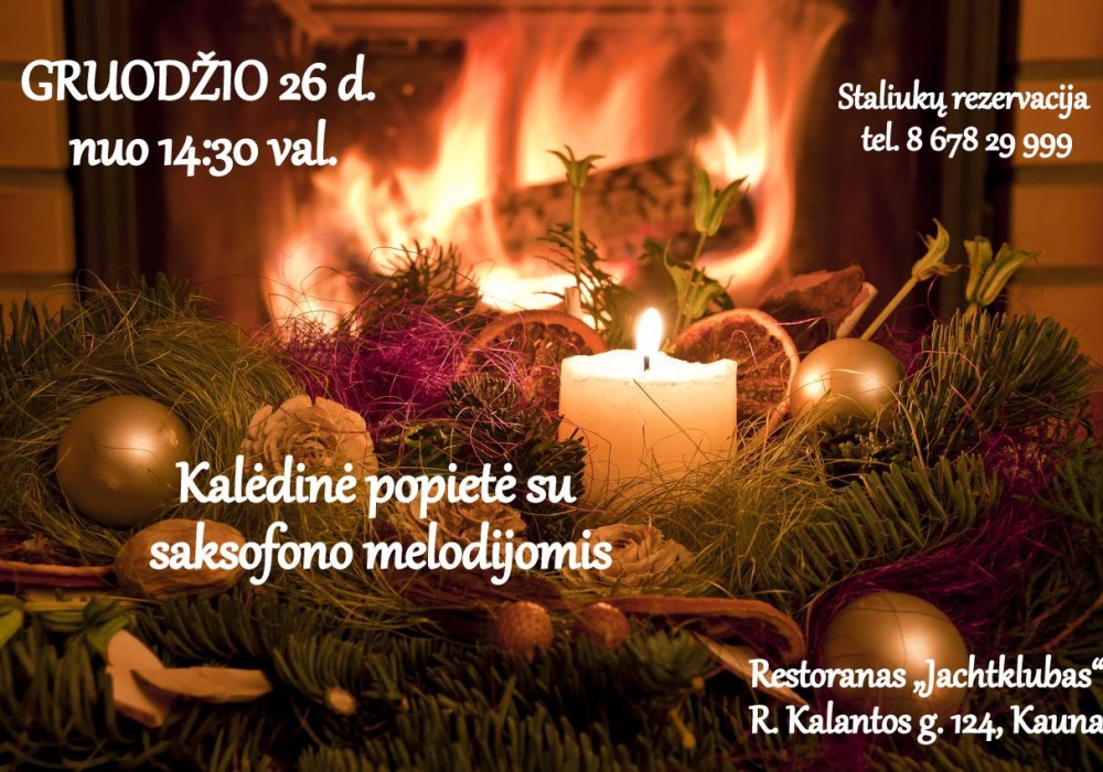 Praleiskite šį laiką jaukioje, kalėdinėje aplinkoje skanaujant gardžius restorano šefų ruoštus patiekalus. Popietės nuotaiką kurs saksofonistas Michailas Javičius.