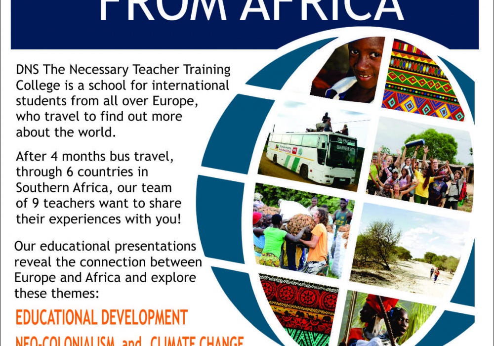 Esame studentai iš DNS – “The Necessary Teacher Training college” – Būtinųjų mokytojų ruošimo koledžo Danijoje. Mes, “DNS 2014” komanda pradėję studijas 2014 rugsėjį, keliavome beveik 4 mėnesius autobusu po pietų Afrikos šalis: Mozambiką, Pietų Afriką, Botswaną, Zambiją, Tanzaniją ir Malavį.