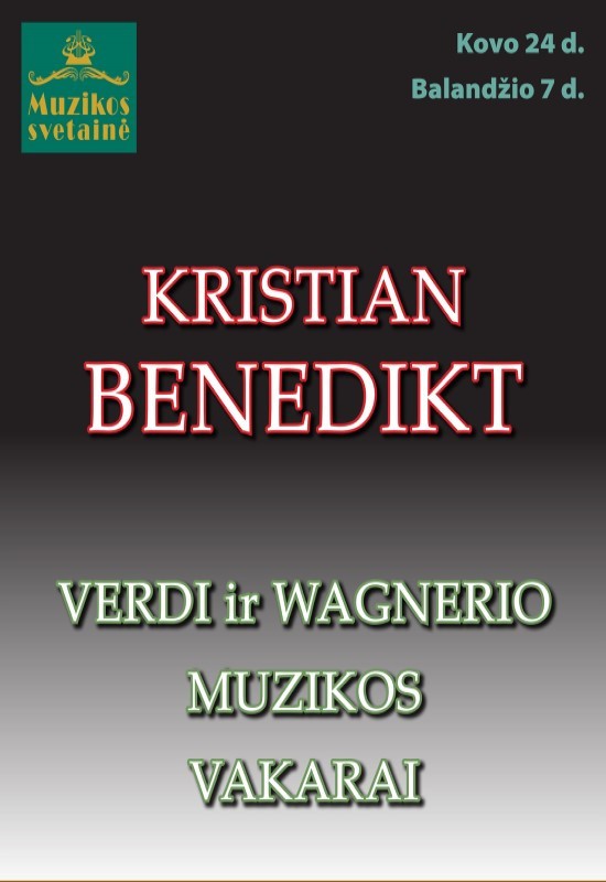 Tenoras Kristian Benedikt dainuoja pagrindinius Verdi ir Wagnerio vaidmenis Europos operos scenose. Jo sukurtas Otelo vaidmuo skambėjo jau daugiau kaip šimtą kartų įvairiuose pasaulio operos teatruose.