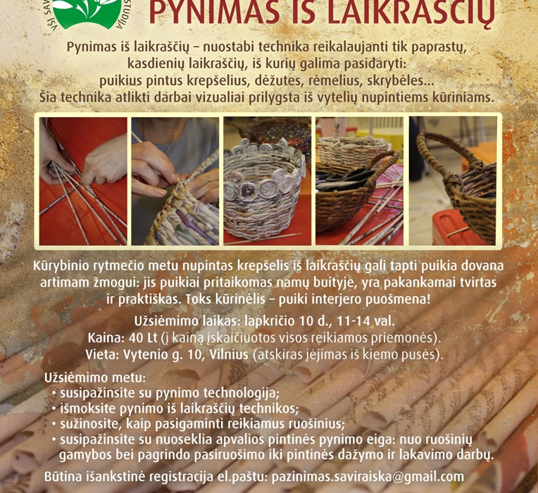 Pynimas iš laikraščių – nuostabi technika, reikalaujanti tik paprastų, kasdienių laikraščių, iš kurių galima pasidaryti: puikius pintus krepšelius, dėžutes, rėmelius, skrybėles…