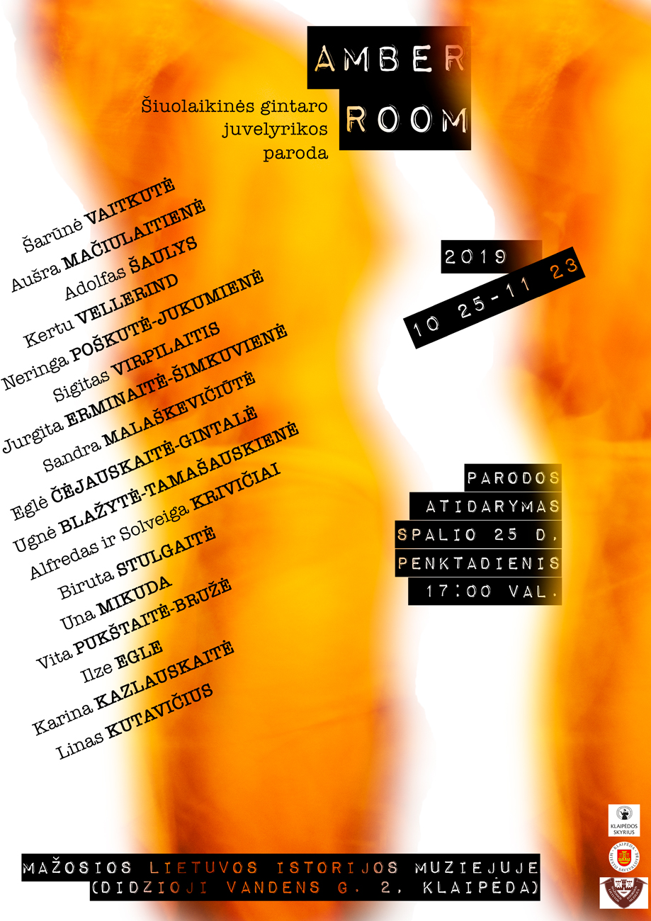 Lietuvos dailininkų sąjungos Klaipėdos skyrius įgyvendina projektą, kuriuo Klaipėdoje pristato šiuolaikinės gintaro juvelyrikos parodą. Labai simboliškai kviečiame jau šį penktadienį, spalio 25 dieną, 17 val., įsibėgėjus „gintariniam rudeniui“ atverti duris į „gintaro kambarį“ Mažosios Lietuvos istorijos muziejuje (Didžioji Vandens g. 2, Klaipėda), 3-io aukšto parodinėje salėje, autentiškame fachverkininės architektūros pastato interjere, kuriame gintaras vaidins svarbiausią kultūrinį/istorinį/meninį vaidmenį. „Amber room“ parodoje, simboliškai dedikuotoje Baltijos kelio jubiliejui paminėti, dalyvauja garsiausi juvelyrikos meno kūrėjai iš Lietuvos, Latvijos ir Estijos.