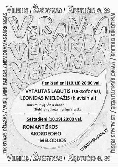 Svetainėje-bare “Veranda” DŽIAZUOJAME GYVAI!