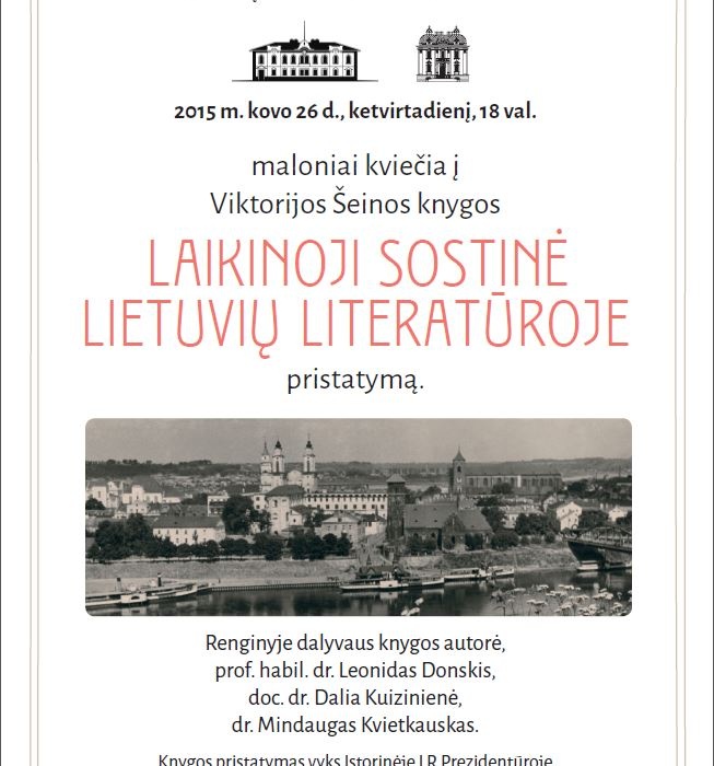 Kovo 26 d., ketvirtadienį, 18 val. įvyks Viktorijos Šeinos knygos „Laikinoji sostinė lietuvių literatūroje” pristatymas.