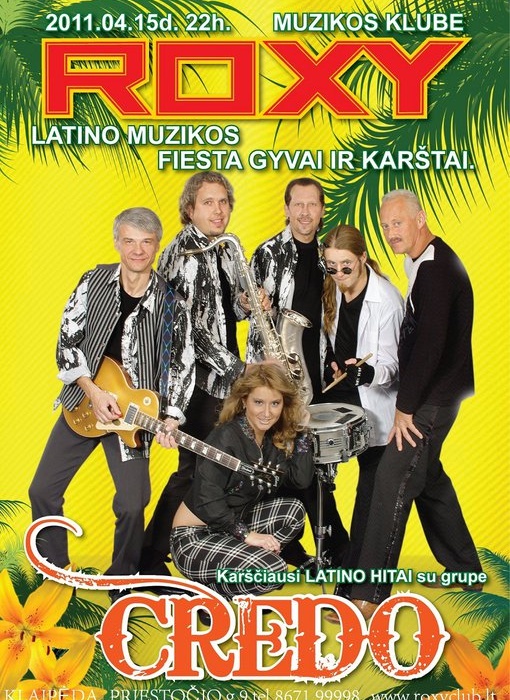 Balandžio 15 d. uostamiesčio grupė CREDO kviečia visus į temperamentingą ir karštą latino muzikos fiestą ROXY klube!