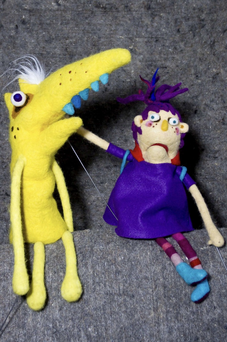 Moderniai „suveltą“, komizmu, dramatizmu, kriminaliniais elementais ir muzikiniais intarpais pagardintą „Raudonkepuraitės“ siužetą spektaklyje pasakoja iš vilnos nuveltos, ryškios, spalvingos pirštininės lėlės, žavinčios originalumu ir įspūdingomis plastinėmis galimybėmis.
