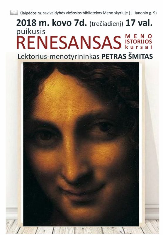 Klaipėdos miesto savivaldybės viešosios bibliotekos Meno skyriuje (J. Janonio g. 9) kviečiame į meno istorijos paskaitą „Puikusis Renesansas“.