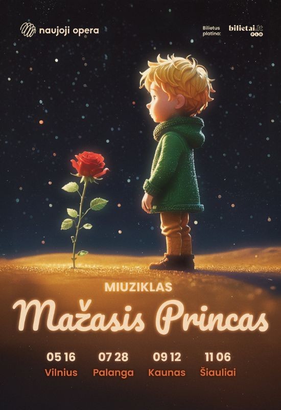 Miuziklas „Mažasis princas“ sužavi tiek mažuosius, tiek suaugusiuosius. Tai jautrus, magiškas ir vizualiai įspūdingas muzikinis pasakojimas, kuriame susijungia teatras, gyva muzika ir poezija. Kiekviena scena kuria unikalų pasaulį, pilną spalvų, šviesų ir emocijų, kuris nepalieka abejingų.