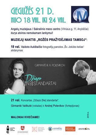 21 val. koncertas „Džiazo [NE]standartai”, kurio metu gražiausiais džiazo skambesiais užbursGirmantė Vaitkutė (vokalas) ir Andrej Polevikov(fortepijonas). Renginys facebook