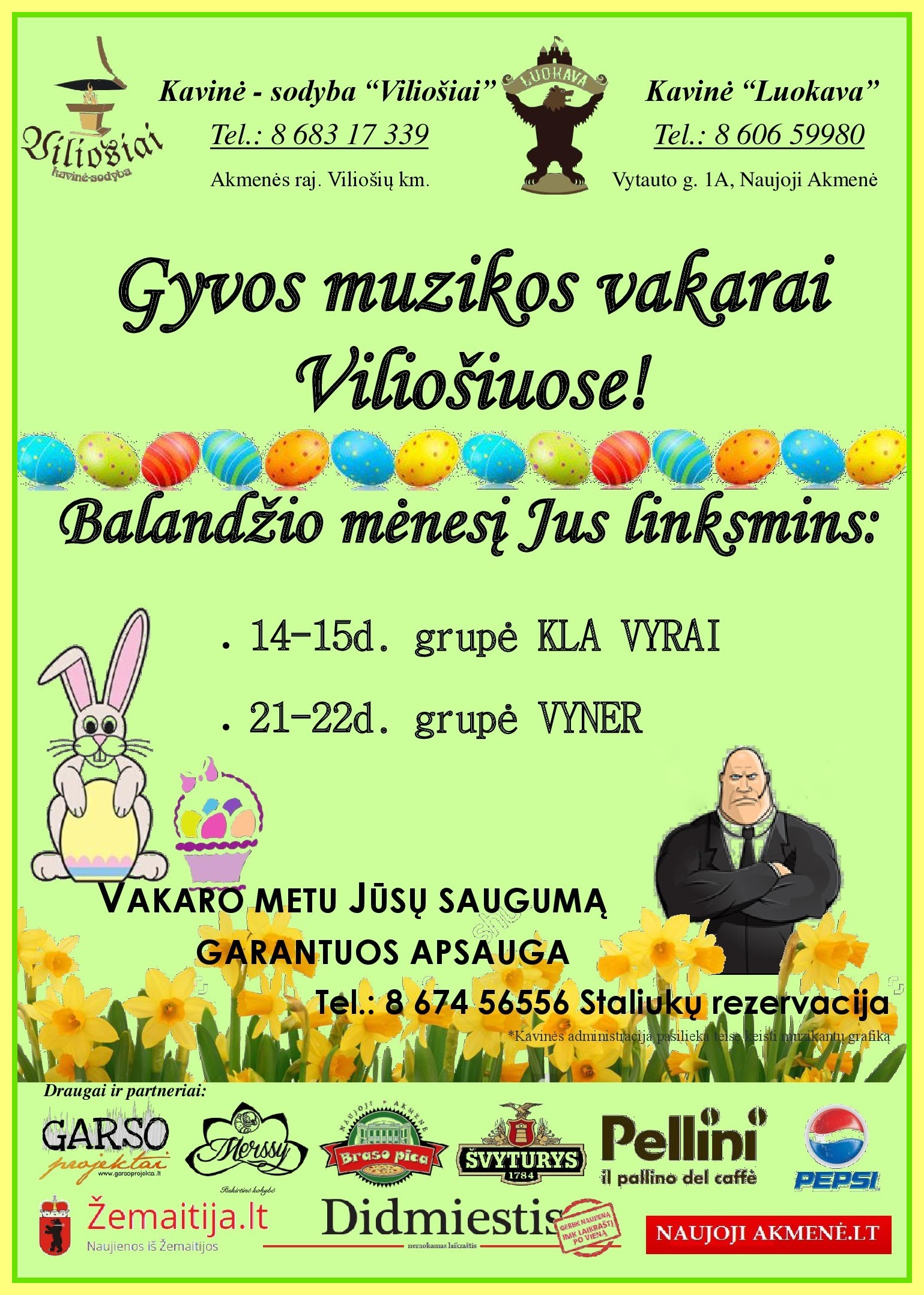 Švęskime Velykas su Kla vyrais Viliošiuose. Įėjimo kaina 2,90 Eur. Staliukų rezervacija išankstinė.