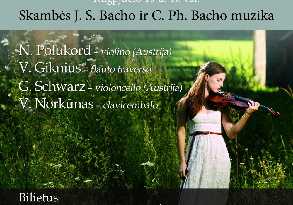 Rugpjūčio 19 d. 18 val. Bažnytinio paveldo muziejus kviečia į koncertą. Johano Sebastiano Bacho ir Carlo Philippo Emmanuelio Bacho kūrinius atliks Natalija Polukord, smuikas (Austrija-Lietuva), Georg Schwarz, violončelė (Austrija), Vytenis Giknius, fleita, Vilimas Norkūnas, klavesinas. Bilietus galite įsigyti muziejaus kasoje. Bilieto kaina – 25 Lt, lengvatinio (moksleiviams, studentams, pensininkams) – 15 Lt. Į kainą taip pat įskaičiuotas ekspozicijos aplankymas (prieš koncertą).