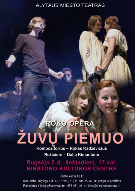 5 d. 17.00 Birštono kultūros centre roko opera „Žuvų piemuo”. Trukmė: 1 val. 15 min. Bilieto kaina: 10 Lt.