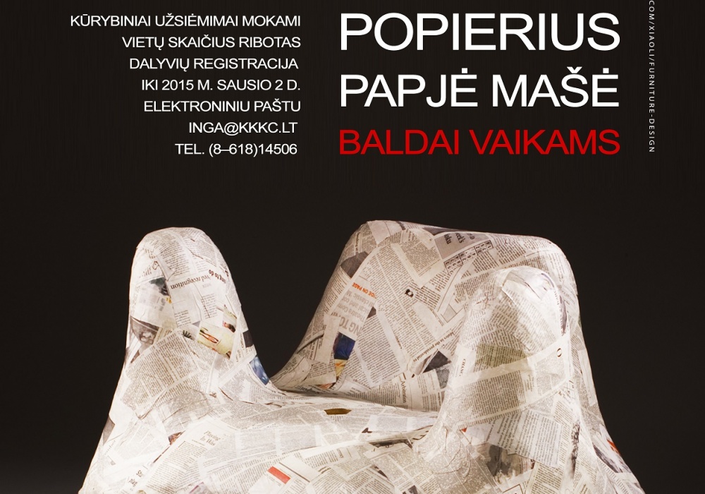 Popierius, stiklas, tekstilė – šios medžiagos puikiai tinka kaip perdirbimo meno priemonės. Sausio pirmadieniais bei trečiadieniais KKKC Meno kiemo dirbtuvėse vyks studijos pirmosios sesijos „Papjė mašė. Baldai vaikams“ užsiėmimai.