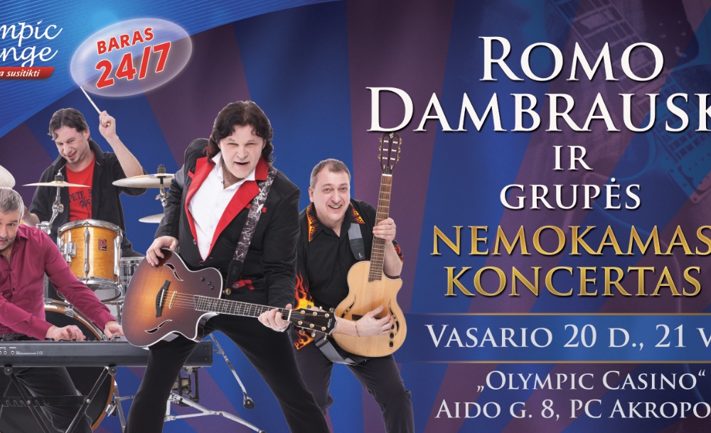 Nemokamas Romo Dambausko koncertas Šiaulių Olympic Casino. garantuojame puikų ir nekasdienišką savaitgalio vakarą