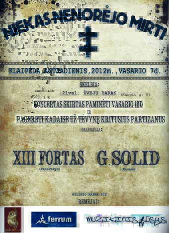 XIII FORTO ir G. SOLID organizuojamo koncertinio turo per Lietuvą “Niekas nenorėjo mirti”, skirto Vasario 16-ajai atminti, koncertas Klaipėdoje.