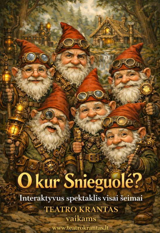 Kviečiame mažuosius žiūrovus ir jų šeimas į spalvingą, žaismingą ir šiltą pasakos pasaulį, kuriame vaikai tampa aktyviais spektaklio dalyviais. „O kur Snieguolė?“ – tai interaktyvus spektaklis, kuriame vaikai iš žiūrovų salės kviečiami į sceną, tampa nykštukais, miško draugais, padeda išgelbėti Snieguolę.