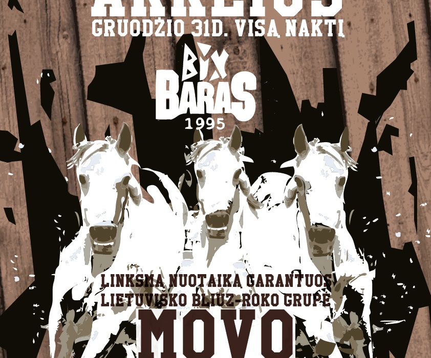 Naujametinė fiesta prasidės gruodžio 31d. Baras duris atvers 20val. MOVO koncerto pradžia 22val. 23:45 draugiškai eisim stebėti fejerverkų, o grįžę į barą galėsim šokti ir trypti iki ryto. PALEISKIM ARKLIUS!