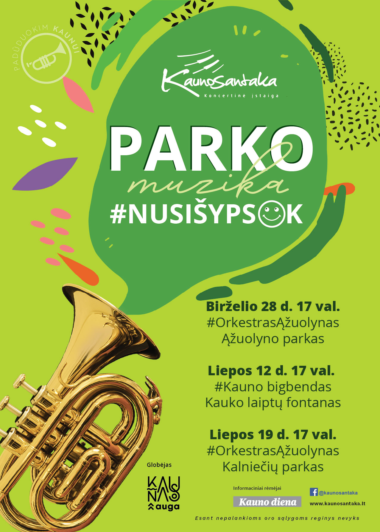 Hey! Nusišypsok! Juk vasara! Be to, skubame pranešti: kauniečių pamėgti nemokami koncertai „Parko muzika“ šiemet vėl bus! Taip, jie grįžta skambiai, nuotaikingai ir su triguba jėga, nes juose išvysite ne tik šauniausią Kauno orkestrą „Ąžuolynas“, bet ir virtuozišką Kauno bigbendą ir lyriškuosius „Ainius“, kurie pažada smagiausią muziką ir šypsenas Jūsų veiduose